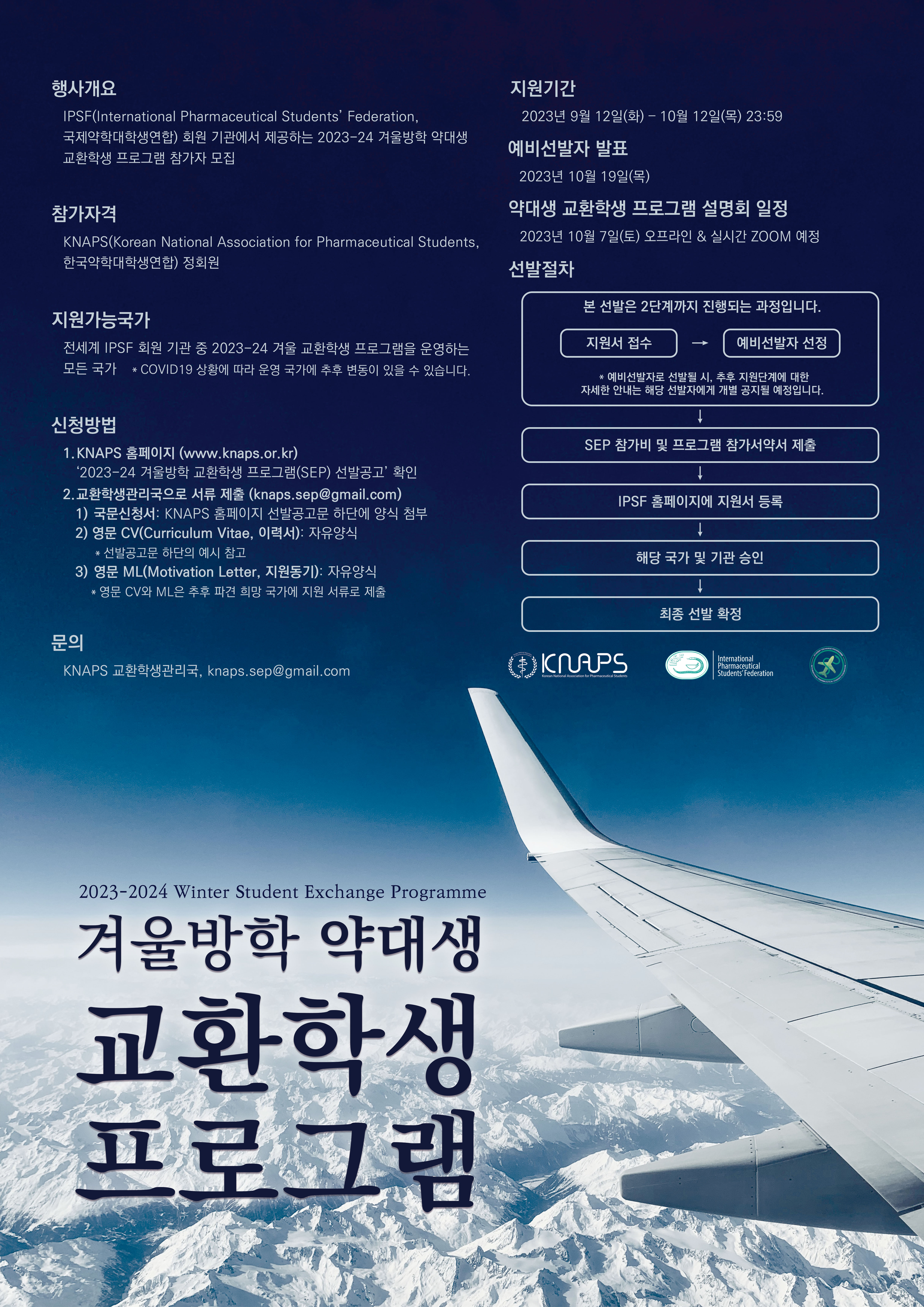 ▶문의 : KNAPS 교환학생관리국장 김수민 (IPSF Student Exchange Officer of KNAPS 2023-24)